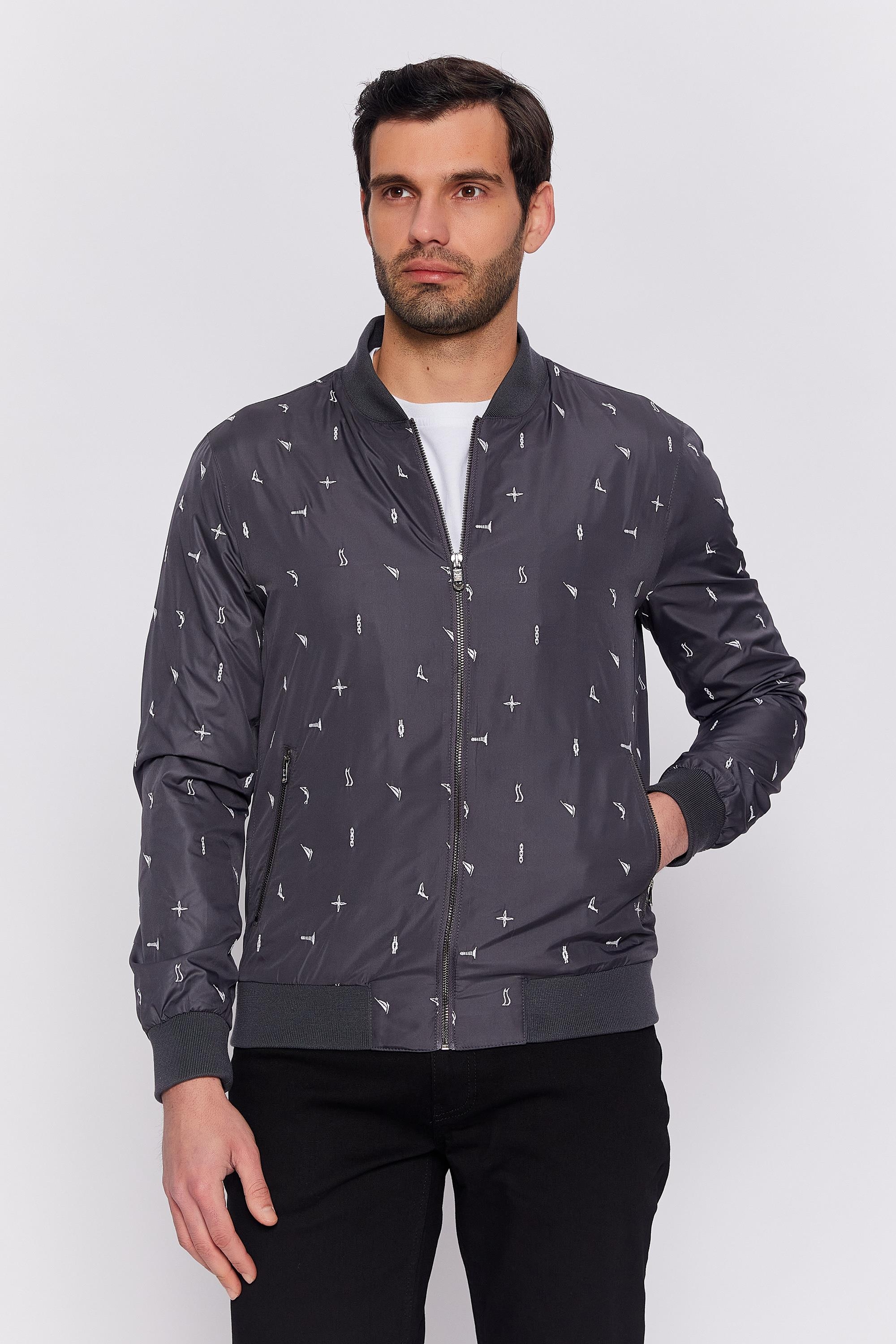Romano Botta Koyu Gri Nakışlı Su Geçirmez Mont