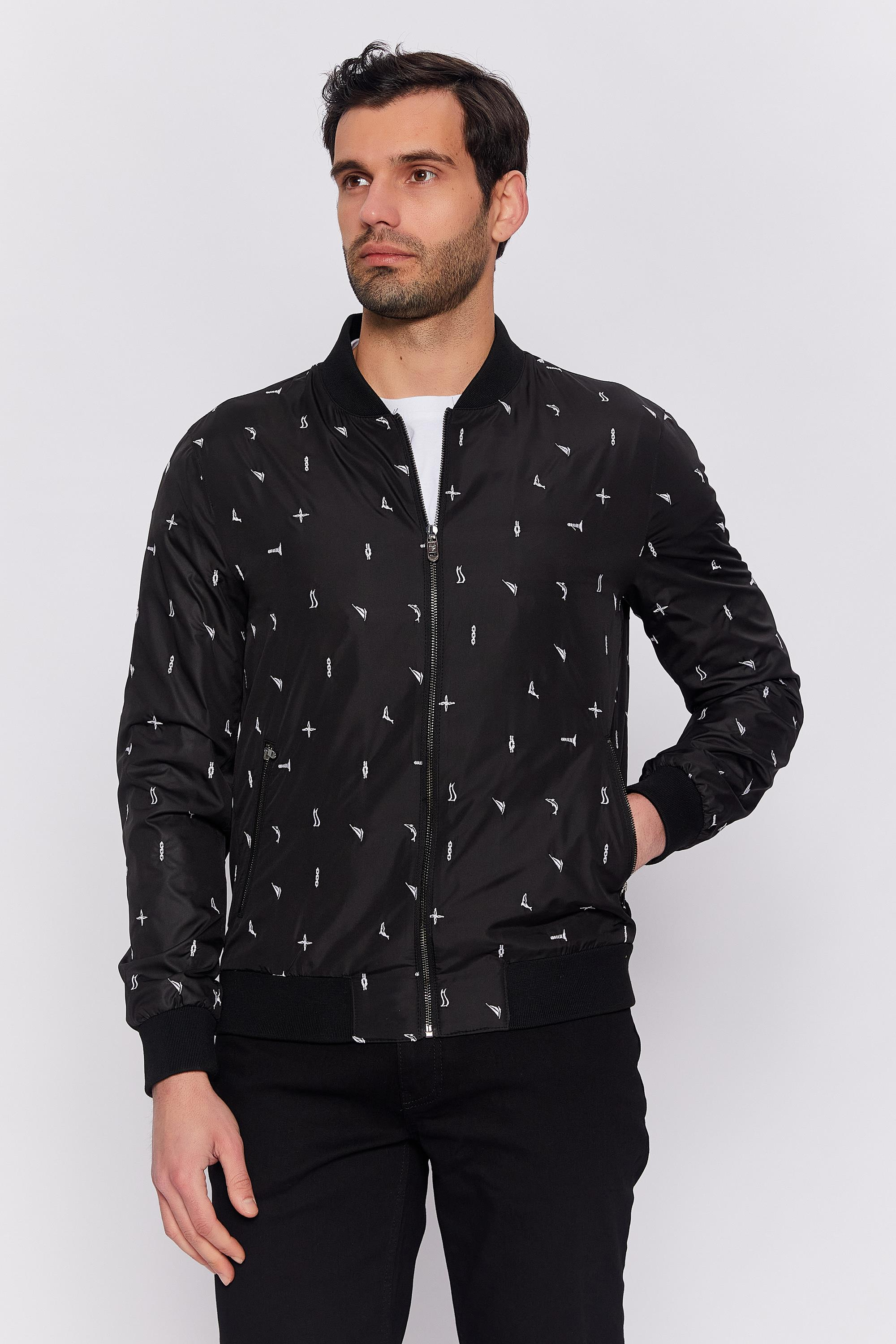 Romano Botta Siyah Nakışlı Su Geçirmez Mont